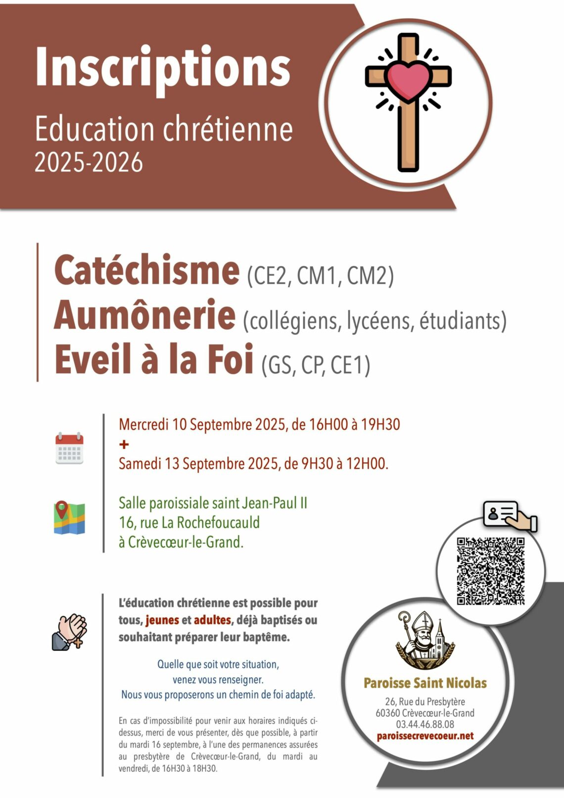 Inscriptions au catéchisme, à l’aumônerie et à l’éveil à la foi (2025)